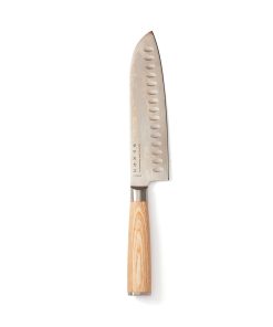 Denne Santokukniven er ideell for å kutte kjøtt og hakke større grønnsaker og urter. Det robuste pakkawood-håndtaket er ergonomisk utformet, noe som gjør kniven enkel og behagelig å bruke. Dette betyr at du kan jobbe med kniven over lengre tid, uten at hånden blir sliten. Bladet har en utrolig hard kjerne bestående av 67 lag med støpt VG10-stål. Resultatet er et slitesterkt blad med utrolig skarphet og utmerket skjæreytelse. Leveres i magneteske.