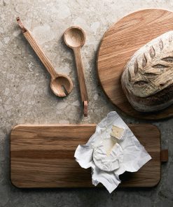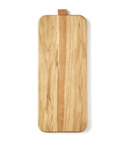 Eksklusivt serveringsbrett av eik med en fin detalj i kunstlær. Utmerket til servering, og når det ikke er i bruk, er skjærebrettet en flott pyntedetalj på kjøkkenbenken. Består av FSC-sertifisert eik som er produsert gjennom ansvarlig skogbruk som respekterer mennesker og miljø.
