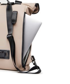 En elegant, moderne veske i smidig vegansk skinn / nubuck-PU. Det allsidige designet gjør at den kan bæres som enten en ryggsekk eller en veske – pendle med bagen komfortabelt på ryggen, for så bare bære den over armen hvis du skal ut og spise lunsj. Den smarte, polstrede datalommen er det perfekte stedet å oppbevare enhetene dine i. Du kan også feste denne vesken til sykkelrammen. Den perfekte kombinasjonen av praktisk og stilig!