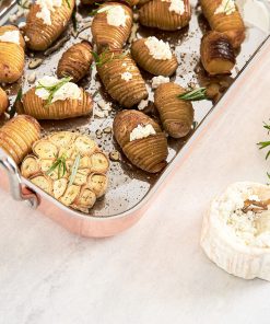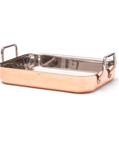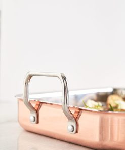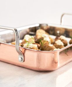 Eksklusiv ovnsform i kobber med tre lag. Det første laget er det utvendige laget av kobber, og innsiden består av et lag aluminium og et lag rustfritt stål som gjør gryten enkel å rengjøre. Kobber- og aluminiumslagene leder varme godt, noe som gjør at gryten varmes opp hurtig og jevnt. Bunnen er forsterket med en tykk rustfri stålplate slik at det er mulig å bruke gryten på en induksjonsplate. Formen har håndtak i rustfritt stål som holder seg kjølig under tilberedingen. Egnet for alle stekeplater, inkludert induksjonsplater. Størrelse: 35 x 25 x 6 cm, 5,2 L. Leveres i gaveeske.