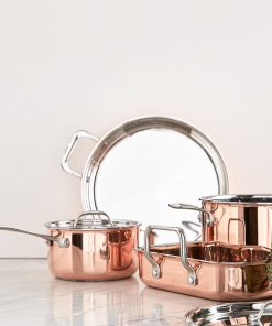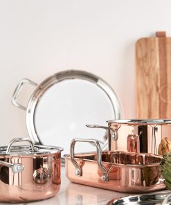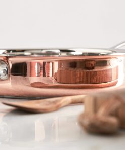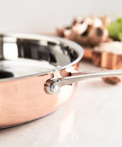 Eksklusiv sautégryte i kobber med lokk. Det første laget er det utvendige laget av kobber, og innsiden består av et lag aluminium og et lag rustfritt stål som gjør gryten enkel å rengjøre. Kobber- og aluminiumslagene leder varme godt, noe som gjør at gryten varmes opp hurtig og jevnt. Bunnen er forsterket med en tykk rustfri stålplate slik at det er mulig å bruke gryten på en induksjonsplate. Gryten har et håndtak i rustfritt stål som holder seg kjølig under tilberedning. Egnet for alle stekeplater, inkludert induksjonsplater. Størrelse: 28 x 28 x 6 cm, 3,5 L. Leveres i gaveeske.