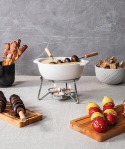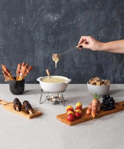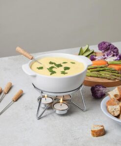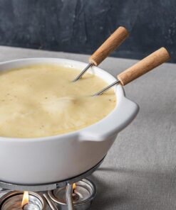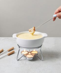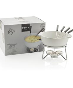 The Cheese Fondue Set Party, fra merket BOSKA – et B Corporation-sertifisert selskap – kan brukes til å tilberede 500 gram ostefondue eller 750 ml varm saus. Bare varm den opp i mikrobølgeovnen og det er klart! Den keramiske fonduegryten holder godt på varmen, og holder ostefonduen deilig myk og varm ved hjelp av tre telys. Ideell for to til fire personer. Fonduesettet tåler delvis oppvaskmaskin; fonduegryten og fonduegaflene tåler oppvaskmaskin. I tillegg har en 10 års garanti.