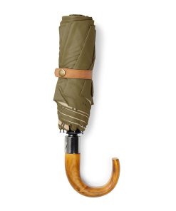 Det doble laget med 190T resirkulert PET-materiale gir god beskyttelse mot regn, og det fine fôret på innsiden gir et elegant design. Paraplyen har ribber og ramme av fiberglass som gir slitestyrke og lang holdbarhet. Håndtaket til paraplyen er laget av komposittre, som gjør designet litt mer sofistikert. Paraplyen har automatisk åpning og manuell lukking. Trekket i matchende stoff gir et ekstra beskyttelse når du ikke bruker paraplyen.