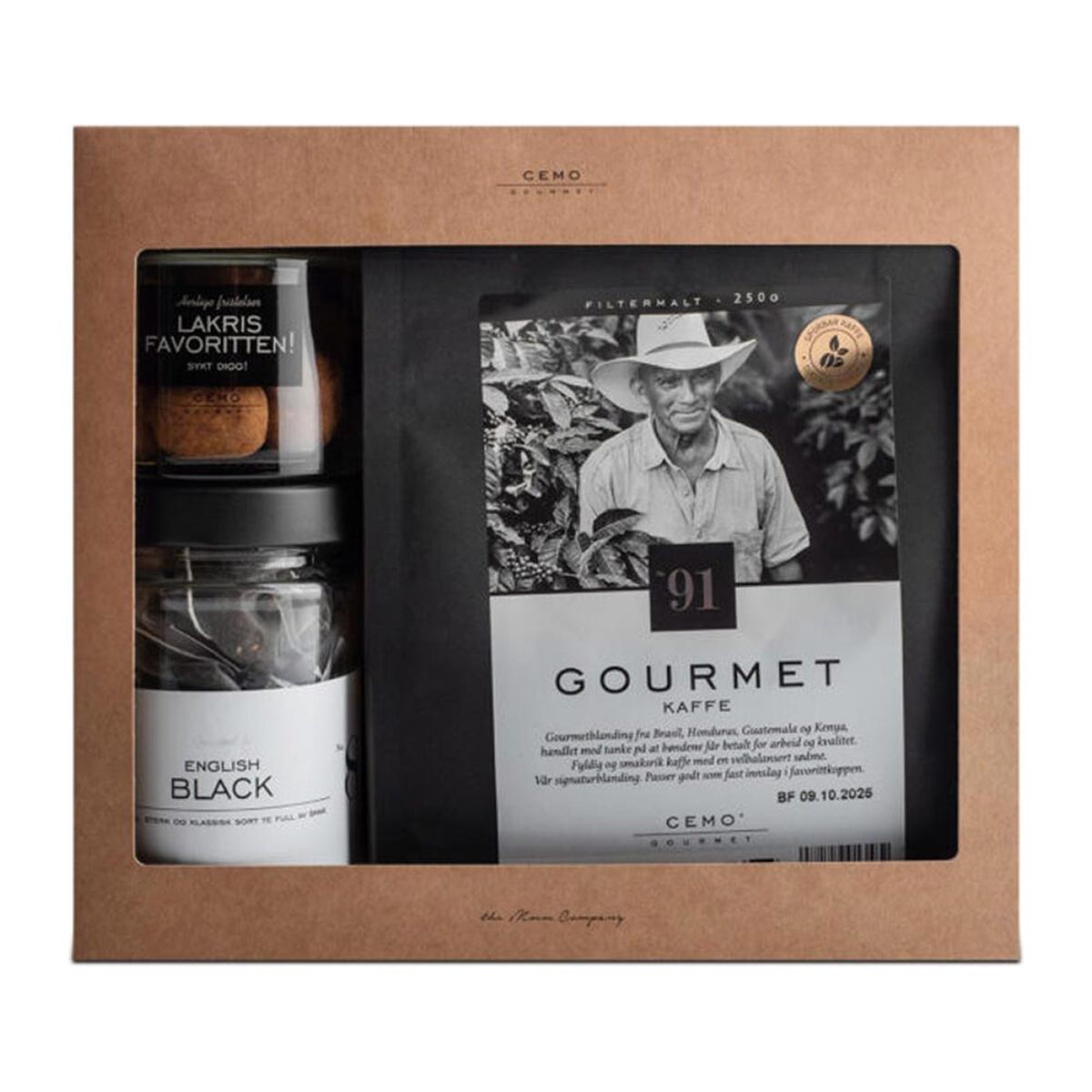 Gourmetkaffen er en førsteklasses blanding fra Brasil, Honduras, Guatemala og Kenya. Den byr på en fyldig og smaksrik opplevelse med en velbalansert sødme. I gaveesker følger det også med English Black te, en smakfull sort te som smaker nydelig med en skvett melk.