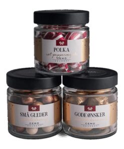Julegodter er en herlig gavepakke fylt med søte klassikere. Her får du Gode ønsker – nydelige sjokoladehjerter pakket i gullfolie, nostalgiske polkadrops med frisk peppermyntesmak, samt Små gleder, sprø sjokoladekuler med knasende sjokoladecrisp. En smakfull blanding av sjokolade, nostalgi og knas som gjør seg like godt til kaffekosen som til å gi bort som en liten juleoverraskelse.