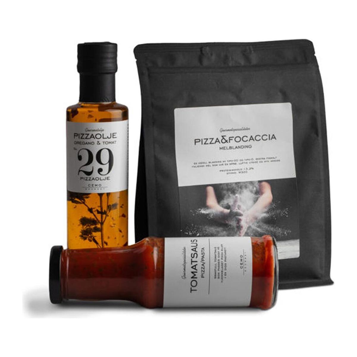Den perfekte gave for pizzaelskeren. Pizzasett med vår spesielle Pizza- og Focaccia melblanding, nydelig pizzasaus og pizzaolje med oregano og tomat. Her trenger du kun å tilsette din favoritt pizzatopping og ost, så har du alt du trenger til en deilig italiensk pizza.