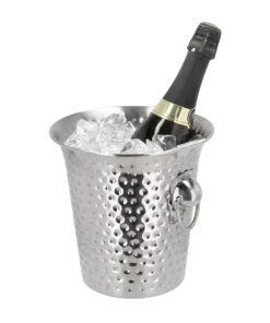 Denne elegante champagnekjøleren er laget av rustfritt stål med en vakker, hamret overflate som gir et sofistikert preg til ethvert arrangement. Med en kapasitet på 4 liter er den ideell til å holde favorittflasken din nedkjølt. De to håndtakene gjør den enkel å transportere, selv når den er fylt med is. Perfekt til alle anledninger der stil og funksjonalitet går hånd i hånd. Dia 20,7 x 20,5 cm.