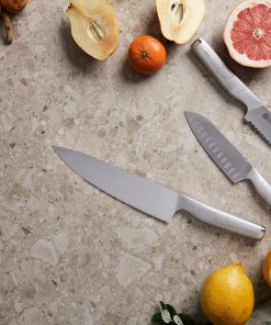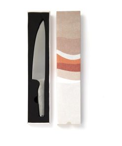 Høykvalitets kokkekniv i japansk stål (420 J2). En utrolig skarp kniv som holder seg skarp lenge. Kniven har et bredt blad som er lett buet langs kanten. En allsidig kniv som kan brukes til alt fra å skrelle, kutte og skive grønnsaker til trimming av kjøtt.