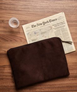 Et smart polstret laptopetui som passer for en 16″ bærbar PC. Dette allsidige etuiet er ideelt for å bære datamaskinen din trygt og stilig med deg, uansett anledning. Designet av høy kvalitet inkluderer en jevn passform for brukervennlighet, smidig vegansk lær og subtile metalldetaljer med messingfinish. Det slanke og elegante designet passer lett inn i bagen eller kofferten. Forretningsreiser har aldri vært stiligere!