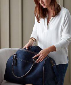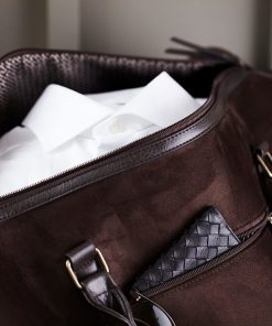 Romslig weekendbag som er perfekt for kortere turer eller utflukter. Bagen kommer i et tidløs og klassisk design i imitert semsket skinn og er dekorert med messingdetaljer. Du kan variere hvordan du bærer bagen, enten ved å bruke håndtakene eller bære den over skulderen med skulderreimen. En flott og enkel følgesvenn for dager når du er på farten. Størrelse: 48,5 x 25 x 30 cm.