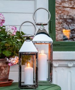 Stallykt av stål og herdet glass, gjør vintermørket hyggeligere. Lykten bør brukes inne. Høyde: 42 cm.