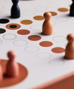 Klassisk Ludo, men et mye morsommere og stiligere design. Spillet kommer i en fin oppbevaringsboks, som i seg selv er et fint interiør til hjemmet.