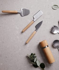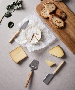 Den perfekte gaven til osteelskere. Et komplett sett med tre ostekniver som er designet for å kutte, skjære, høvle, servere og smøre alle slags harde og myke oster. Dette stilige settet med ostekniver har skaft av asketre og knivblader i rustfritt stål, noe som gir et snev av eleganse til ostebrettet etter middagen.