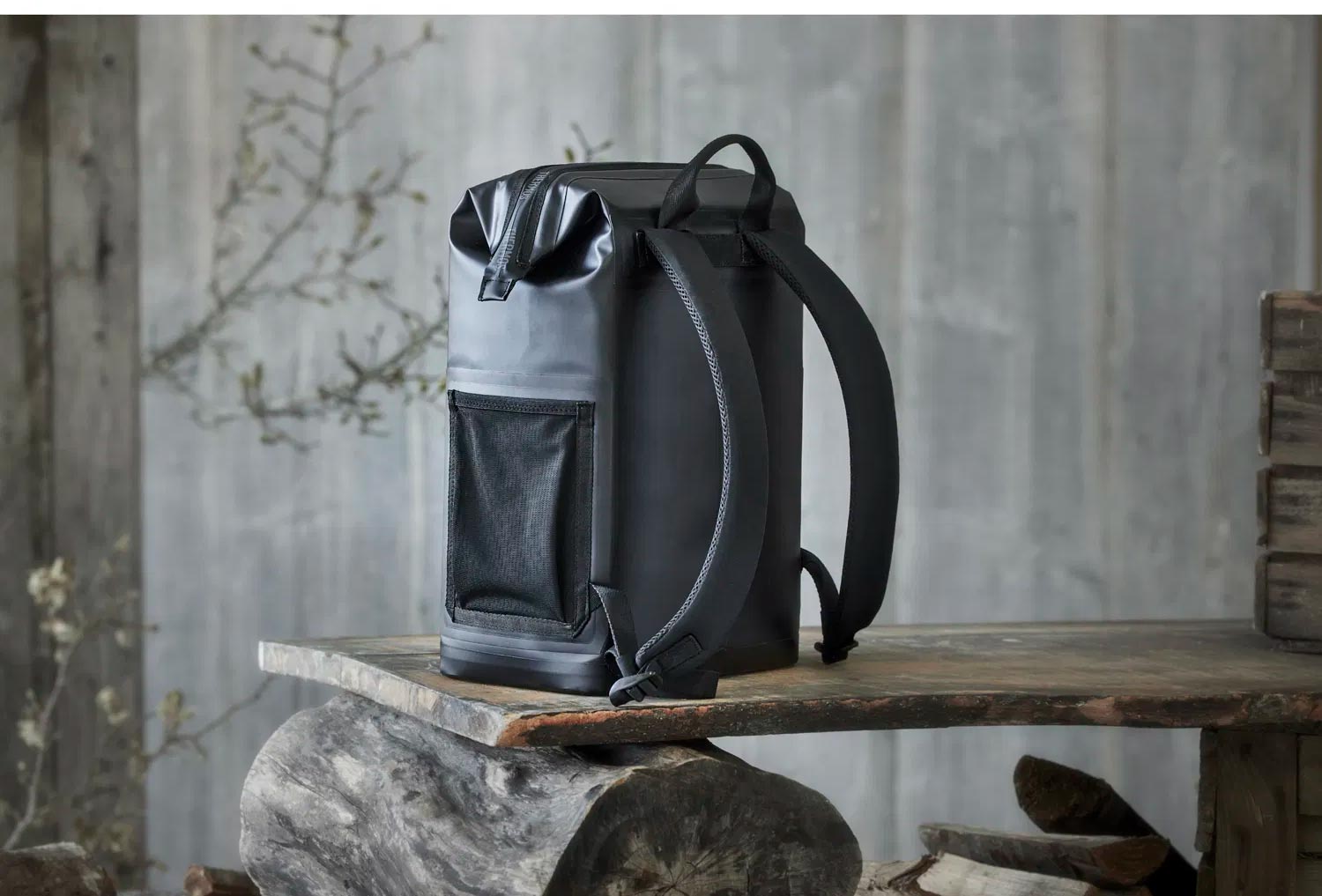 Dra på tur med provianten på ryggen. En stilig og romslig kjøleryggsekk i svart, vanntett TPU, med glidelås på toppen, mesh-lommer på sidene og en innvendig sliplomme i kjølerommet.