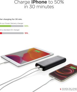 Lad mobilen opp til 5 ganger raskere med denne hurtigladende powerbanken. Takket være den ultraraske type C 18W PD inngangen lades powerbanken i rekordfart. Det tar kun 30 minutter å lade mobilen din opp til 50%. Sakte lading tilhører fortiden. Powerbanken inneholder et A-grad 10.000 mah batteri som varer lenge. Perfekt til å lade alle enhetene på dine reiser og eventyr. Den dobble USB A og type C inngangen lar deg lade opptil 3 enheter samtidig. Urban Vitamin produkter er laget uten PVC og er pakket i redusert plast emballasje. Type-C Input: 5V/3A, 9V/2A; Micro USB Input: 5V/2A, 9V/2A; Type-C Output: 5V/3A, 9V/2A, 12V/1.5A; USB Output: 5V/2.4A, 9V/2A, 12V/1.5