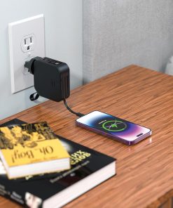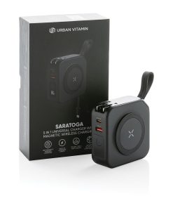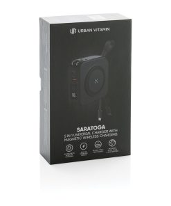 Saratoga 5 i 1 universal lader er den ultimate bærbare laderen, utstyrt med utskiftbare adaptere for sømløs reise. Med en kraftig 10 000mAh batteri gir den forlenget brukstid for dine enheter. Med super-rask 15W integrert magnetisk lader for de nyeste IOS-telefonene og nyeste generasjons Android-telefoner. Dessuten inkluderer den en innebygd kabel skreddersydd for IOS-enheter og en USB-C-kabel for å lette ladingen av Android-enheter og nye generasjons IOS-enheter. Med sin raske PD 20W USB-C-funksjon kan du lade opp din PD-kompatible enhet opptil 50% på under 30 minutter. Inkluderer adaptere for AU, EU, UK, US og Asia. Laderen kan lade opptil fem enheter samtidig, og powerbanken selv lades mens du lader dine mobile enheter når den er satt inn i en stikkontakt. Så våkner du alltid om morgenen med en fulladet telefon og en fulladet powerbank. Urban Vitamin-produkter er laget uten PVC og pakket i plastredusert emballasje.