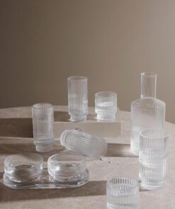 En karaffel laget med tidløst design og klassiske, elegante linjer. Perfekt for enhver anledning der du ønsker å servere forfriskende drikke med stil. Karaffelen skaper en sofistikert atmosfære ved middagsbordet eller andre festlige anledninger. Ideell for vann, juice og andre kalde drikker. Laget av soda-lime glass. Karaffelen rommer 1450 ml og tåler oppvaskmaskin. Kun kalde drikker.